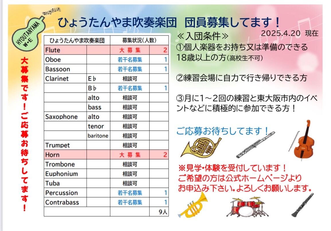 引き続き楽団員募集中です!